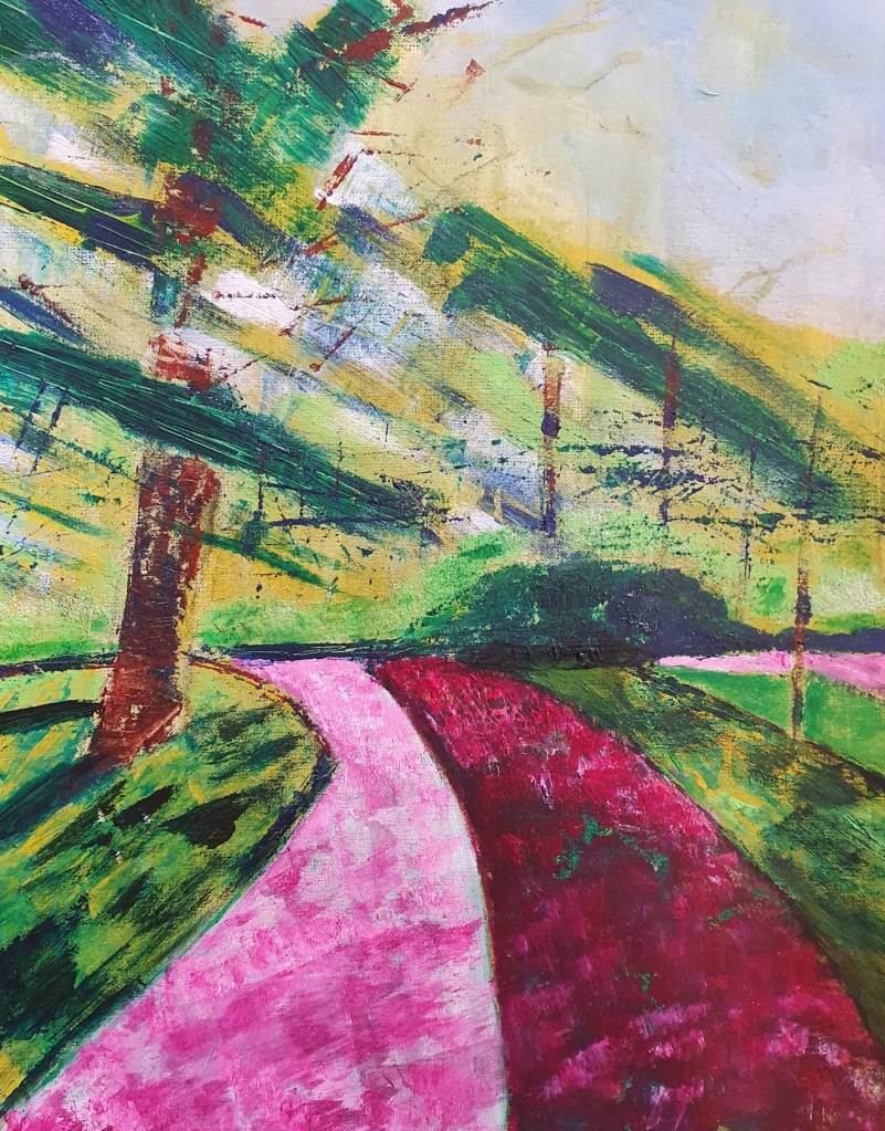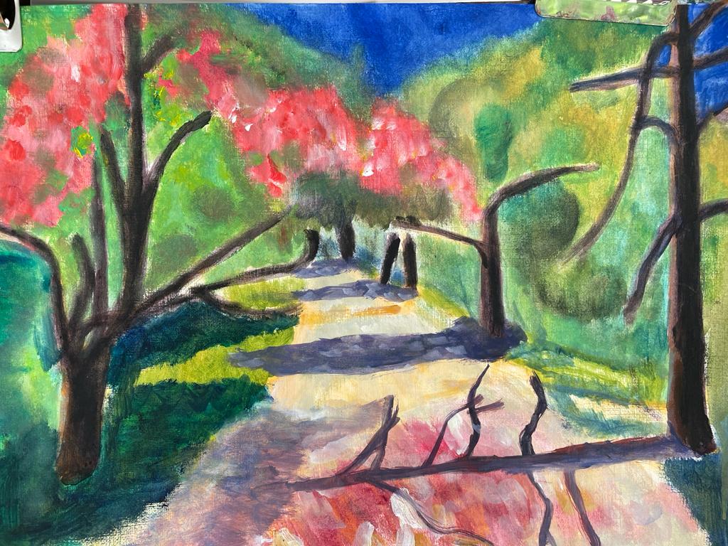 Examples of student work from the recent Summer Term course, ‘Towards Abstraction’. Students took Landscape as a starting point and responded to a range of artists who use a variety of strategies to create abstracted imagery. Courses run via Google Meet and Whatsapp. Students are taught via group discussion, one to one tuition, video demonstration and supporting resources via pdf docs. Look out for news of the next course, ‘Art and Music’, due to run during late summer or early autumn.